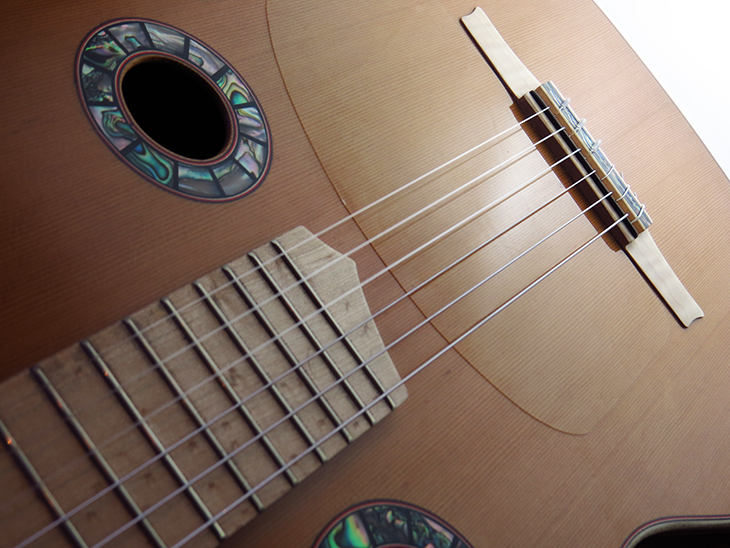 Model: Francisco Simplicio 1929-II with Wittner Pegs* Top: Red Cedar Bridge: Flamed Maple Double Fingerboard: Bird’s Eye Maple & Naseberry Neck: Flamed Maple Back and Sides: Ovangkol Color: Natural