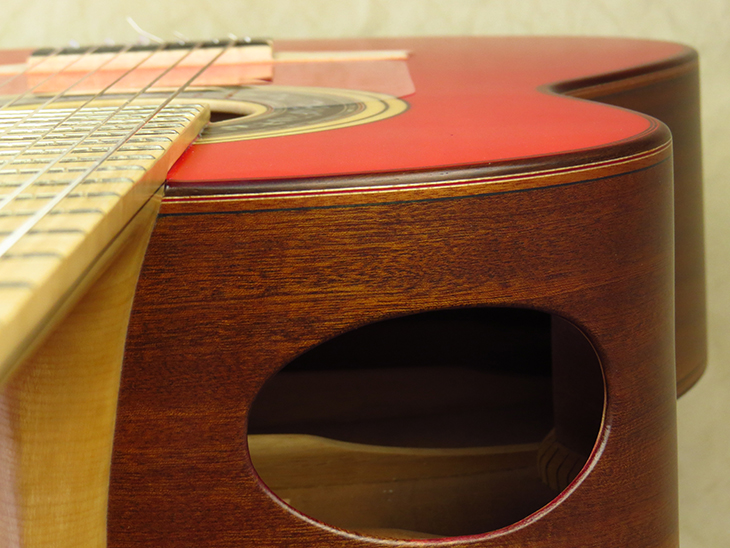 Model: Marcelo Barbero 1945-U Top: Norwegian Spruce Bridge: Bird’s Eye Maple Fingerboard: Maple Neck: Maple Back and Sides: Undianuno Color: Red/Natural